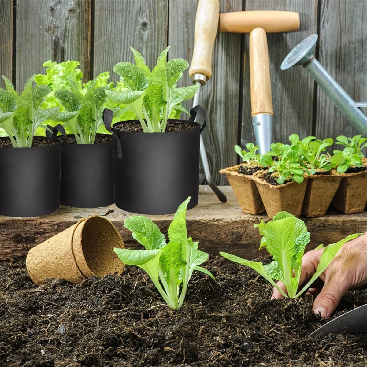 - Komplektis 5 taimekotti, igaühe maht 10 galloni (umbes 38 liitrit)