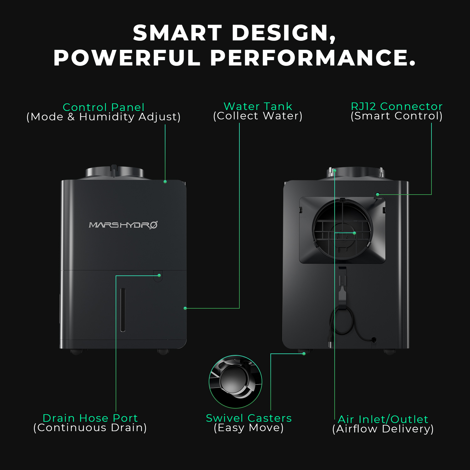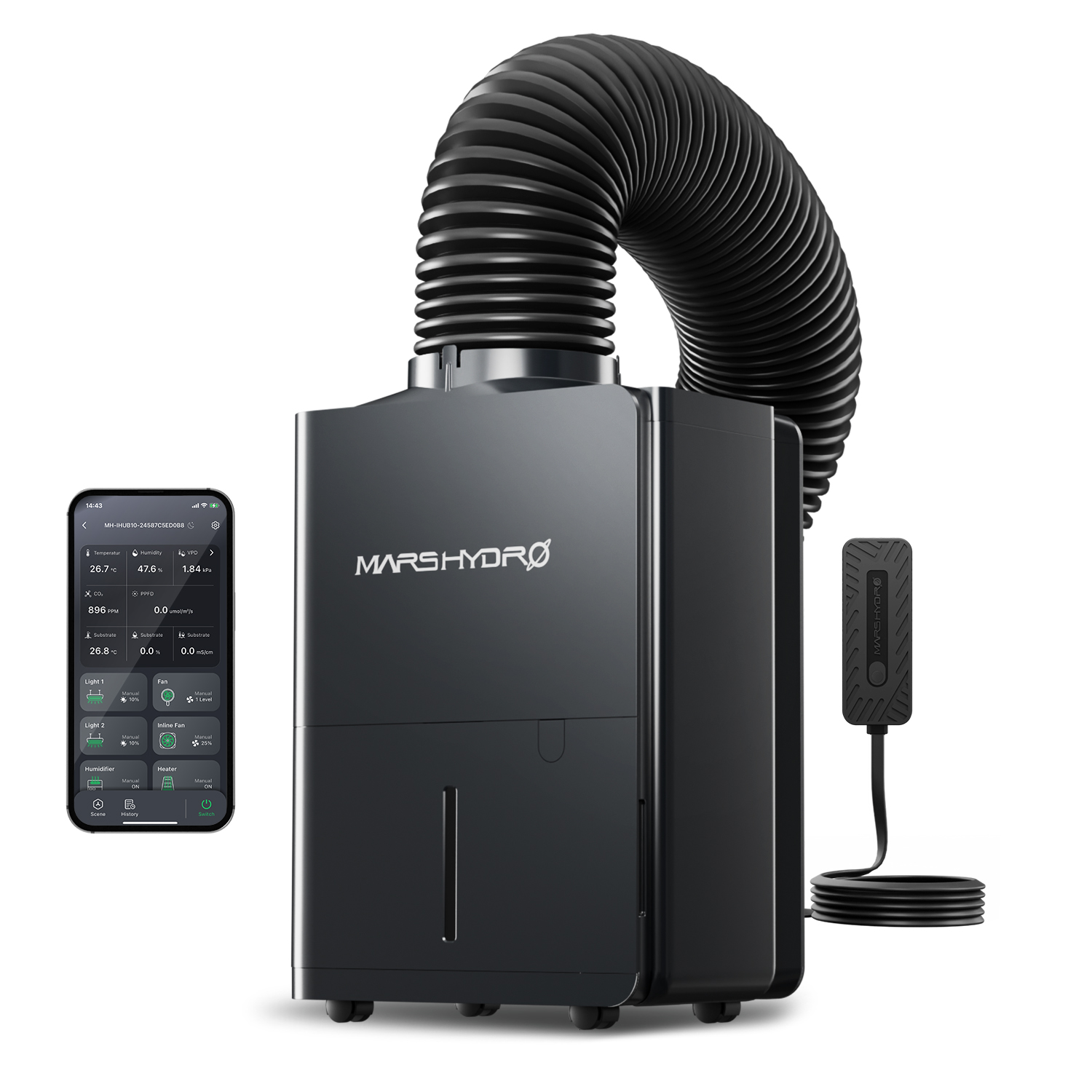 Mars Hydro 12L/24h nutikas õhukuivati on loodud spetsiaalselt siseruumides kasvatamiseks, pakkudes usaldusväärset niiskuse kontrolli kasvutelkides ja aianduskeskkondades. Tänu oma suurele tõhususele eemaldab seade kuni 12 liitrit niiskust ööpäevas, aidates hoida stabiilset kasvukeskkonda ning vältida liigse niiskuse põhjustatud probleeme taimede arengus.