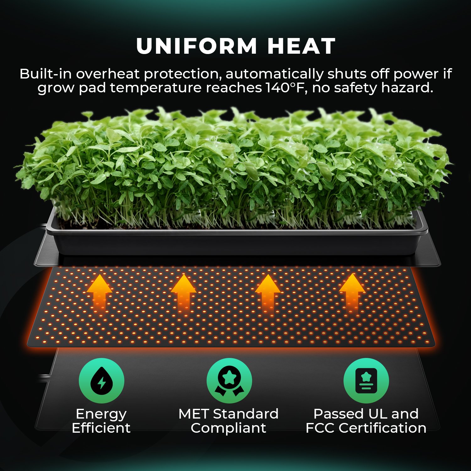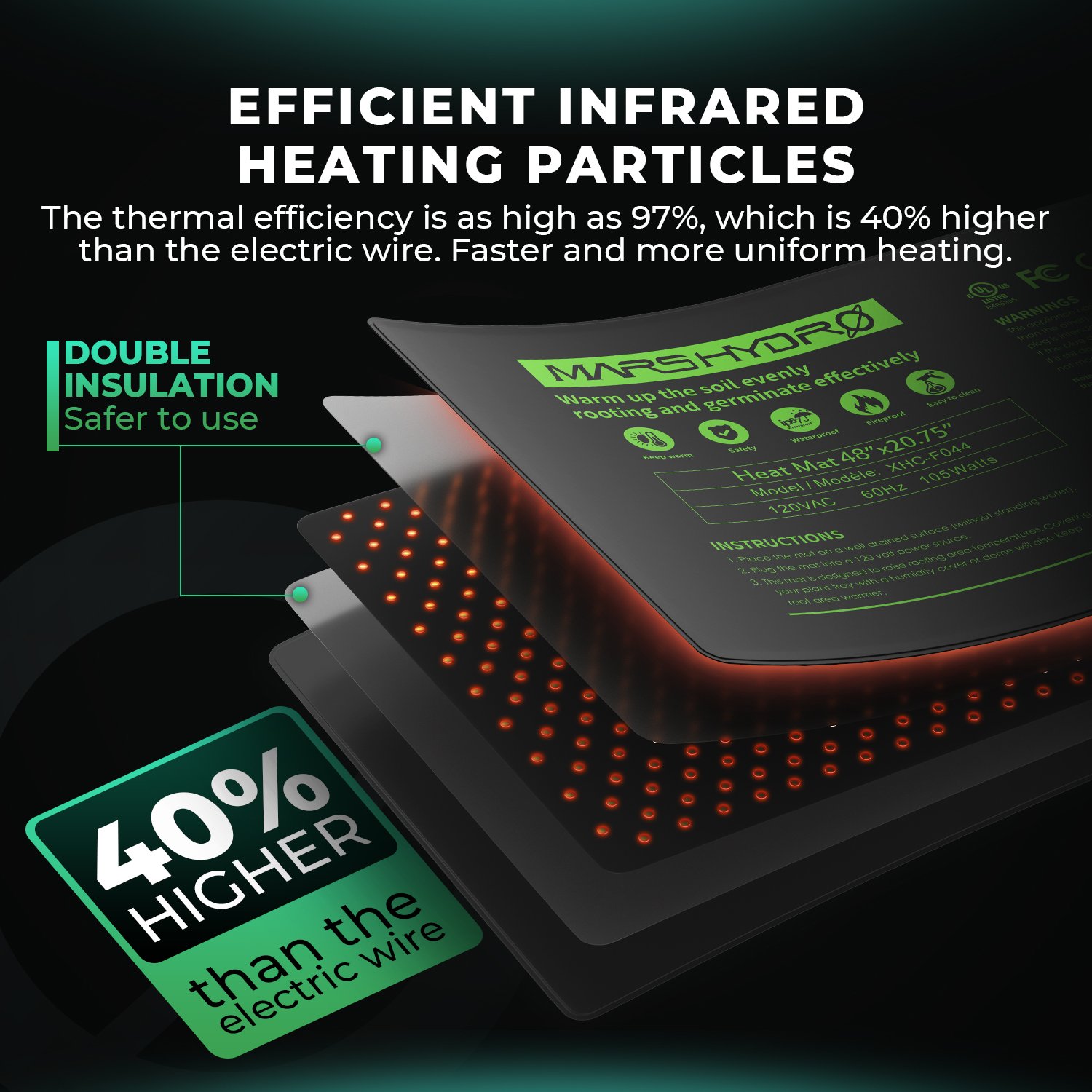 Mars Hydro 25X52cm idandite soojendusmatt koos digitaalse termostaadiga on ideaalne lahendus taimede idandamiseks ja pistikute juurdumiseks. Selle 20W võimsusega matt kasutab kvaliteetset süsinikkiudu, mis tagab kuni 97% soojusmuundustõhususe ning ühtlase ja stabiilse soojenduse. Matt võib pinnatemperatuuri tõsta kuni 48°F (umbes 27°C) kõrgemale ümbritsevast temperatuurist, mis soodustab kiiremat idanemist ja juurdumist.
