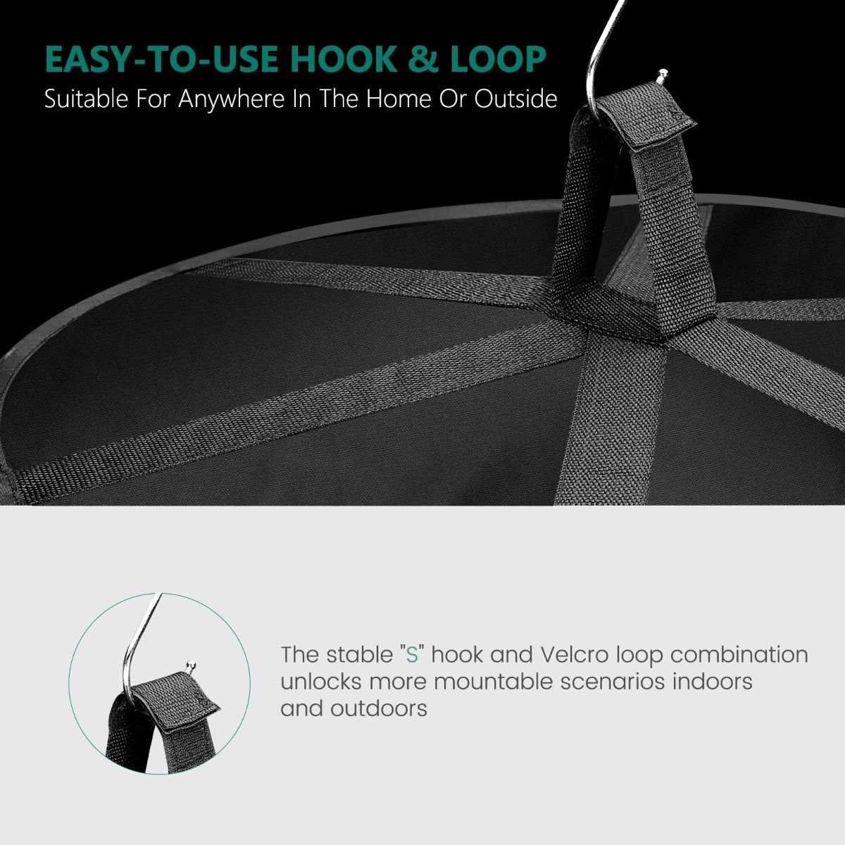 - Riputamiseks ‘S’ konksud ja Velcro kinnitused