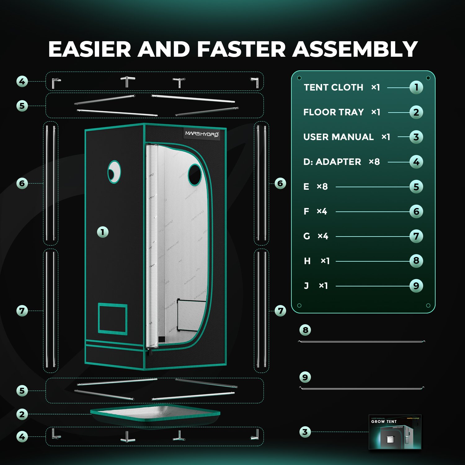 Mars Hydro 60x60x140cm sise telk on loodud pakkuma optimaalseid tingimusi taimede kasvatamiseks siseruumides. Selle tugev metallraam kannatab kuni 40 kg raskust ning vastupidav 1680D Oxford kangas takistab valguse lekkimist, tagades taimedele vajaliku pimeduse ja stabiilse keskkonna.