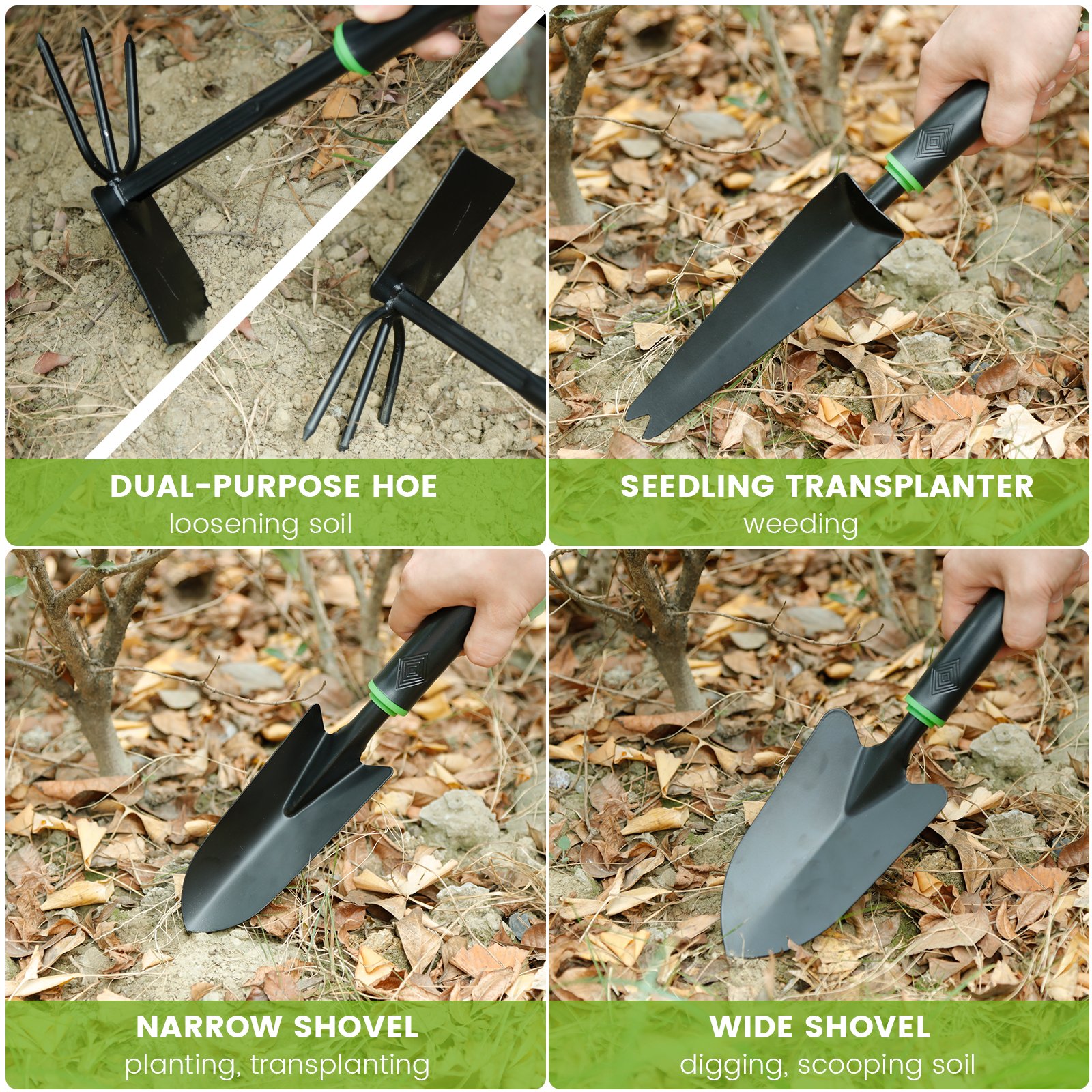 See komplekt ühendab mitmed aiatööriistad ühte mugavasse komplekti, mis sobib nii algajatele kui ka kogenud aednikele. Tööriistade mitmekülgsus võimaldab täita erinevaid ülesandeid, alates mulla ettevalmistamisest kuni taimede hooldamiseni. Kompaktne hoiukott teeb tööriistade kaasavõtmise lihtsaks ja hoiab need korras.
