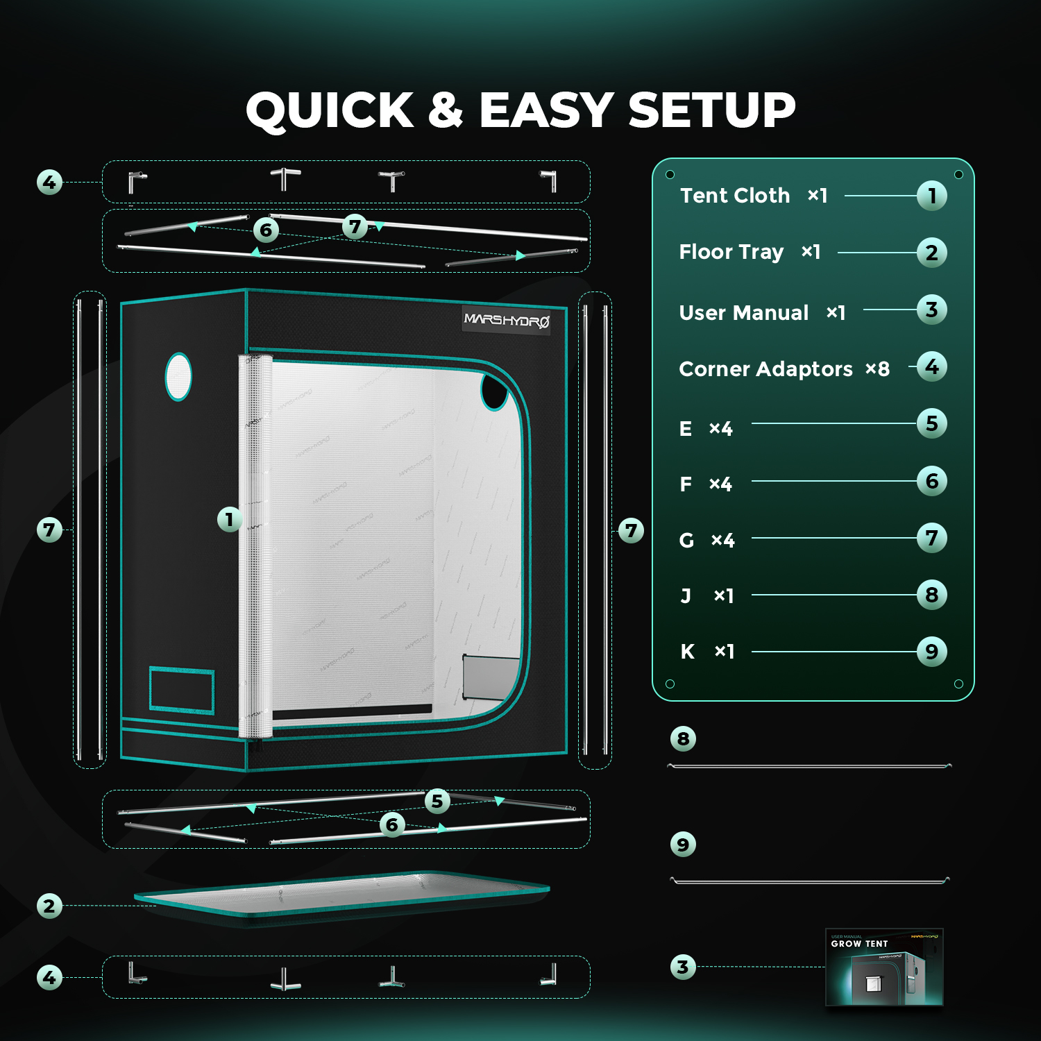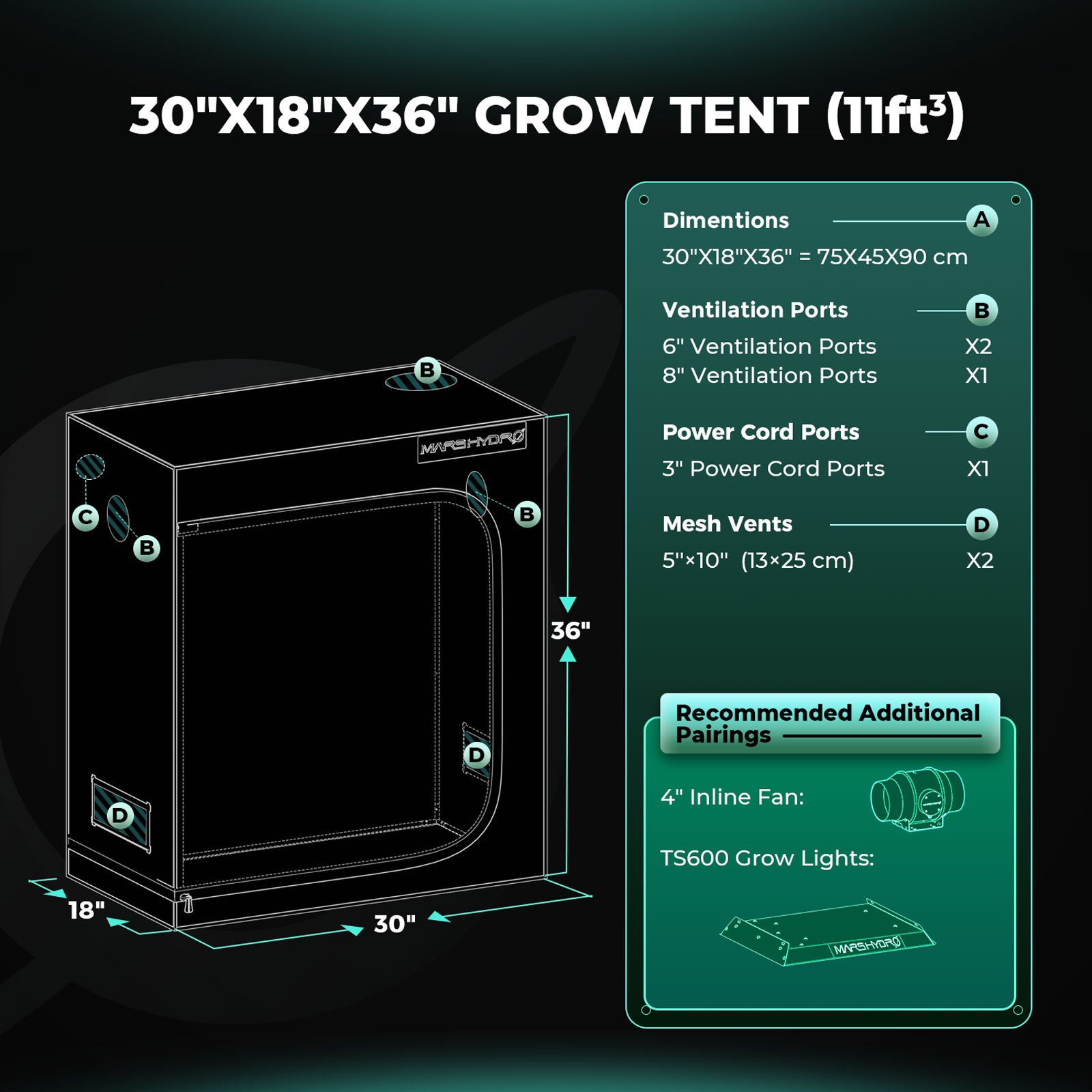 Mars Hydro 75x45x90cm sise telk on loodud taimede kasvatamiseks siseruumides, pakkudes kontrollitud keskkonda vegetatiivseks ja õitsemisfaasiks. Telk on valmistatud vastupidavast 1680D Oxford kangast, mis on rebenemiskindel ja topeltõmmeldud, tagades pikaajalise kasutuse ja tugevuse.