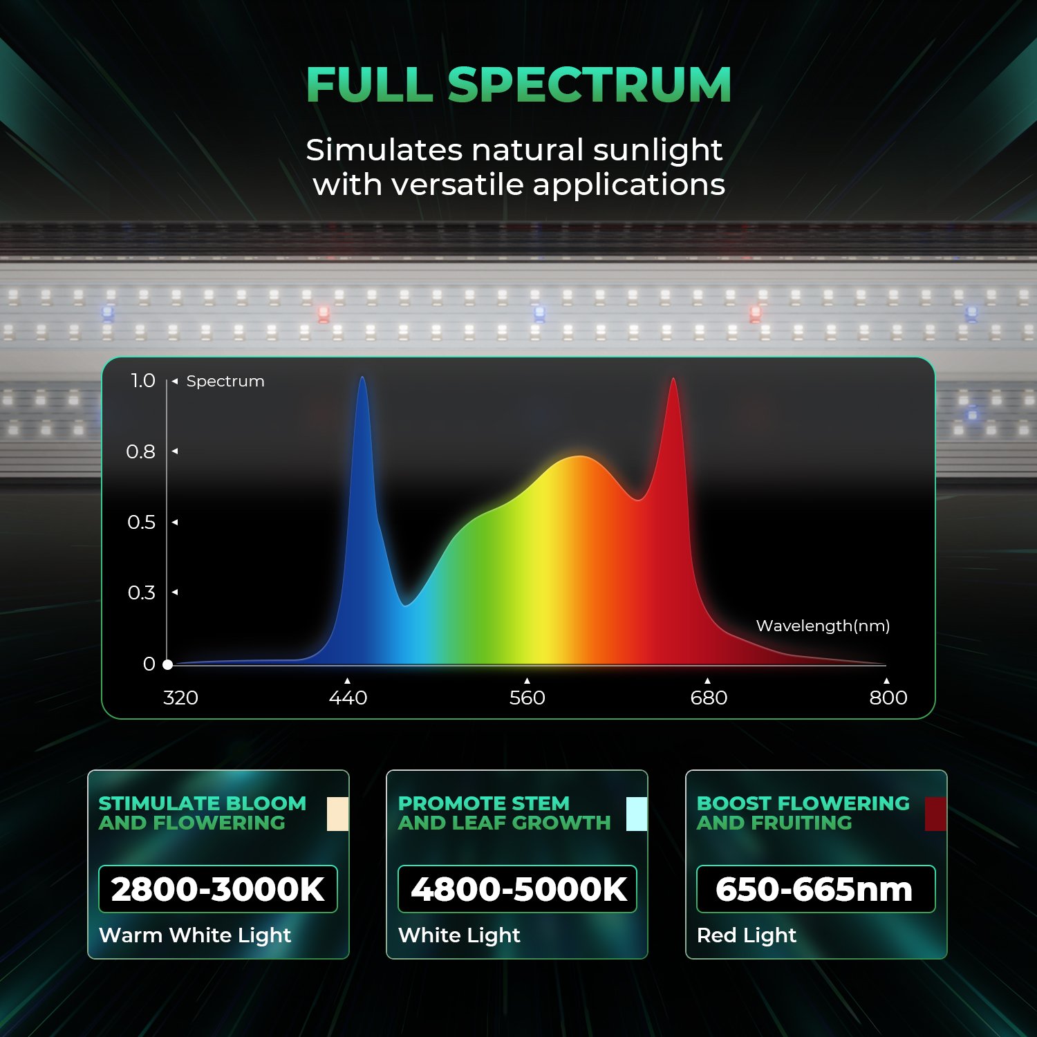 Mars Hydro ADlite 100 4ft LED Kasvulamp on spetsiaalselt loodud taimede alumiste osade valgustamiseks, mida peavalgustus ei pruugi piisavalt katta. Selle laia 260° valgustusnurk tagab ühtlase ja täieliku valguse jaotuse kogu taime katte all, parandades taimede kasvu ja saagikust.