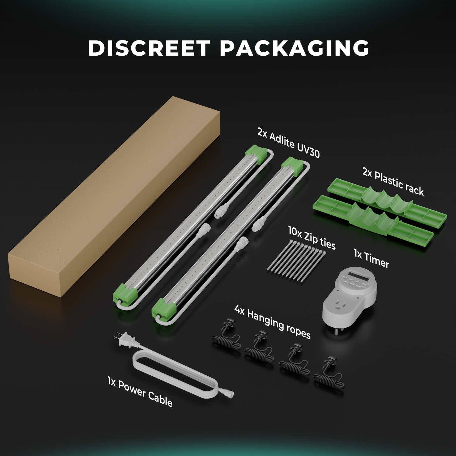 Mars Hydro Adlite UV30 LED kasvulambi ribad on mõeldud UV-valguse täiendamiseks siseruumides taimede kasvatamisel. Komplekt sisaldab kahte 15W ribavalgustit, mis töötavad 365-370nm UVA spektris, ning taimerit, mis võimaldab valguse tööaega täpselt seadistada. See UV-täiendav valgus aitab parandada taimede saagikust ja kvaliteeti, soodustades sekundaarsete metaboliitide, nagu flavonoidid ja antotsüaniinid, tootmist. Need ühendid aitavad tugevdada taimede vastupanuvõimet haigustele ja parandavad üldist tervist.
