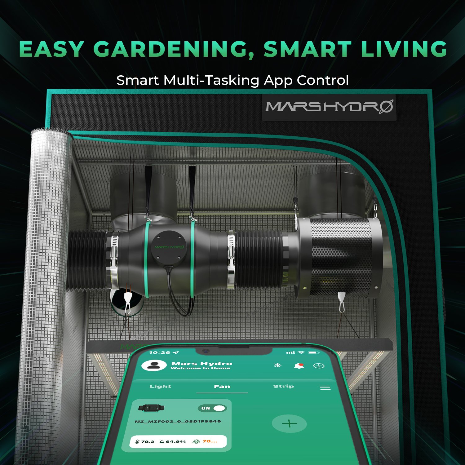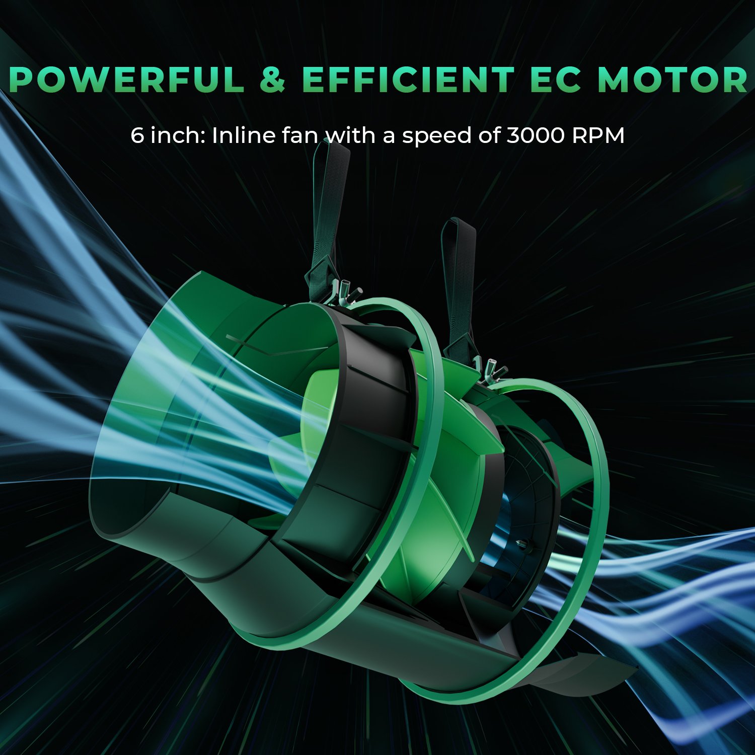 • Ventilaatorisüsteem: 6-tolline iFresh inline ventilaator, millel on 10 kiirustaset ja madal müratase (32 dBA), tagades õhuvahetuse ja temperatuuri kontrolli.