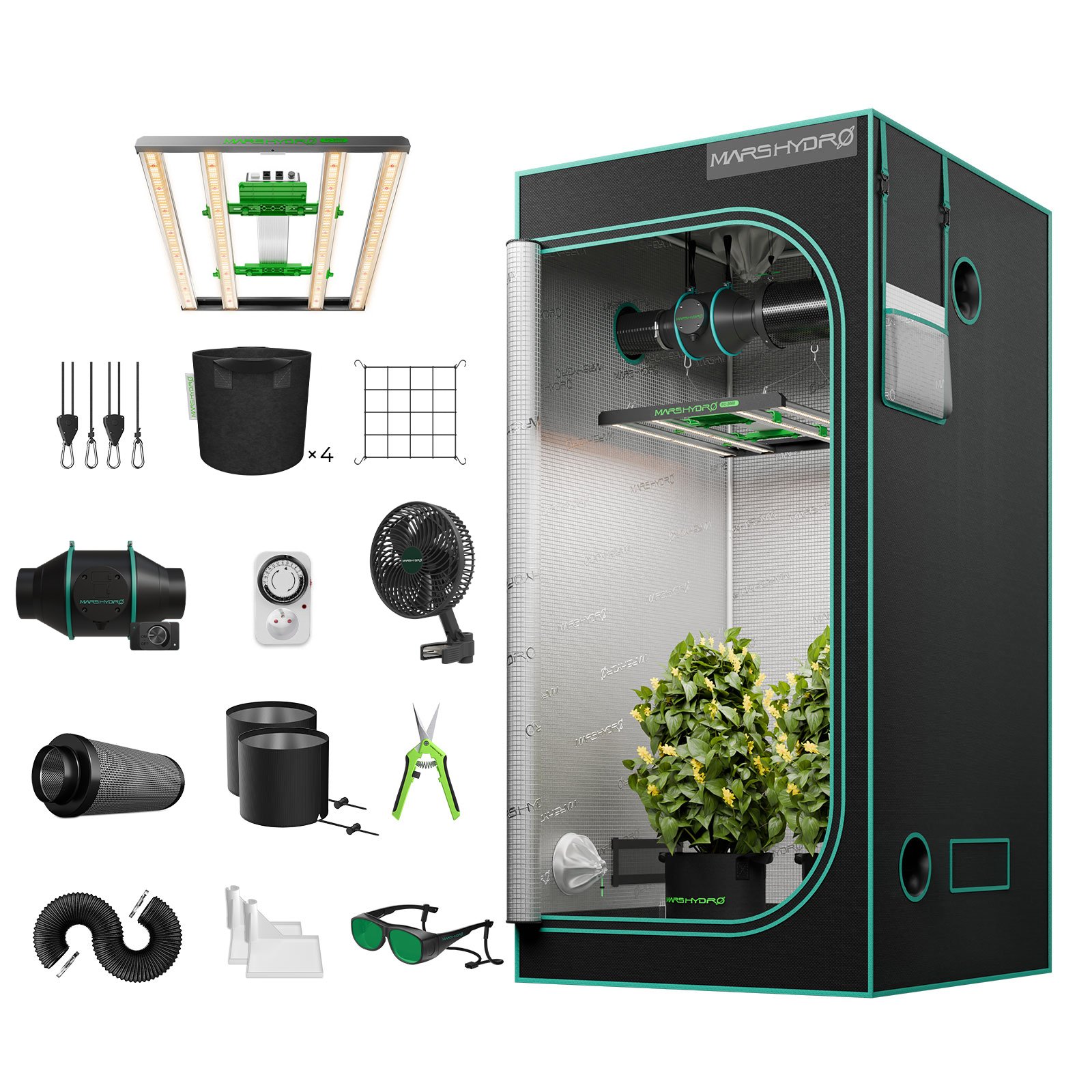 Mars Hydro FC3000-EVO täiskomplekt on loodud professionaalseks siseruumides kasvatamiseks, pakkudes kõike vajalikku taimede tervislikuks ja efektiivseks kasvuks. Komplekt sisaldab võimsat Samsung 300W LED Kasvulampi, mis on hämardatav ja tagab kõrge valguse efektiivsuse ning ühtlase valgusjaotuse. 100x100x180cm suurune kasvutelk loob kontrollitud keskkonna, kus on lihtne reguleerida temperatuuri, niiskust ja valgustust.