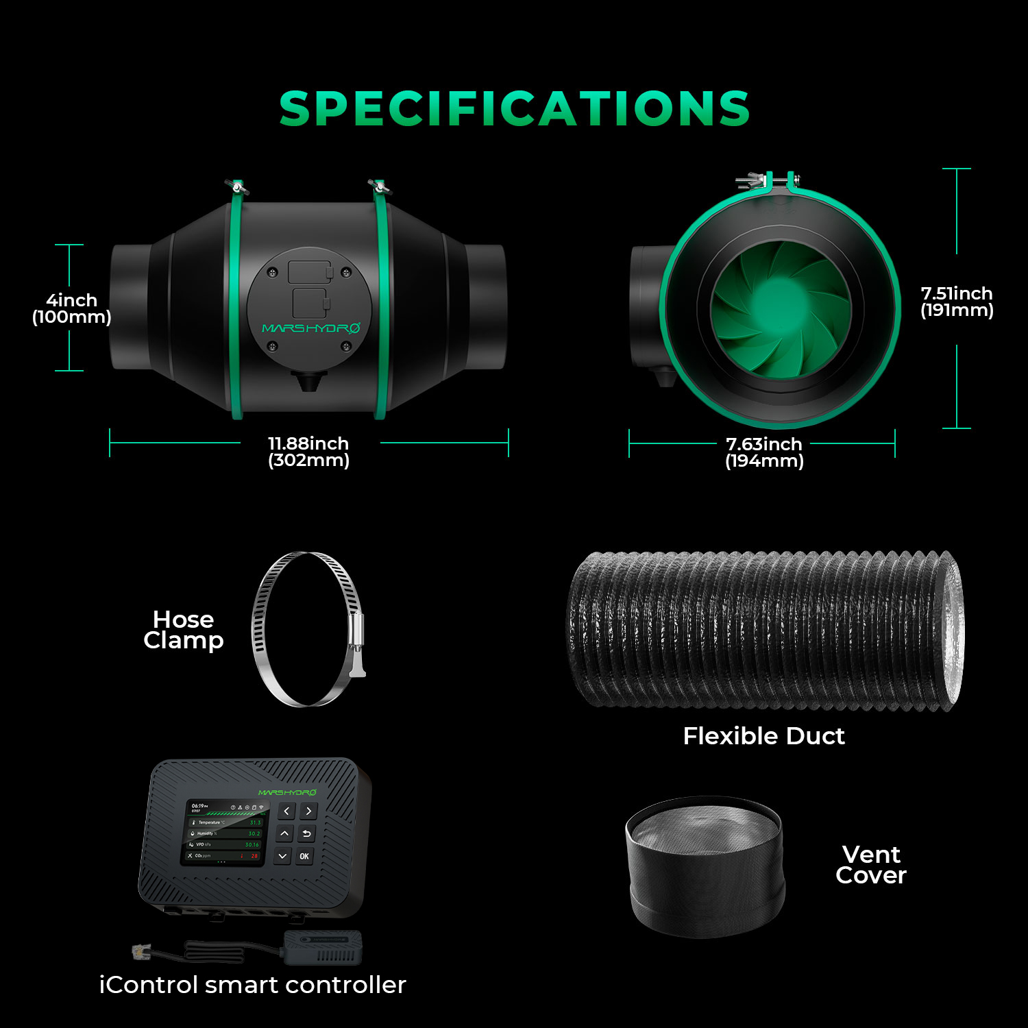 Mars Hydro iFresh 4″ nutikas ventilatsioonikomplekt ühendab endas tõhusa torventilaatori, täidetava söefiltri ja uuendusliku iControl kontrolleri, mis võimaldab kasvuruumi kliimat täpselt hallata. See süsteem on loodud pakkuma usaldusväärset õhuvahetust, eemaldades tõhusalt lõhnad ja liigse niiskuse, et tagada taimedele parim kasvukeskkond.
