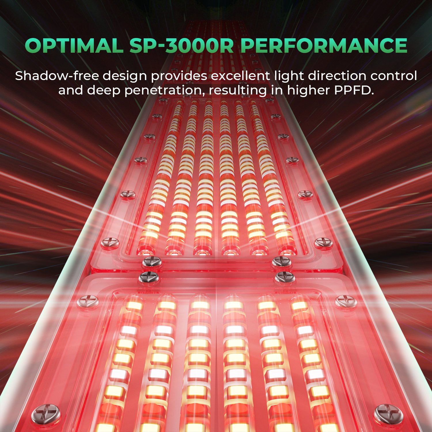 Mars Hydro SP3000R LED Kasvulamp on spetsiaalselt loodud taimede õitsemise ja viljumise maksimeerimiseks, kasutades punase spektri lainepikkusi 650-665nm. Selle kõrge efektiivsusega valgusallikas (3.3 µmol/J) tagab sügava valguse tungimise, jõudes ka taimede alumistesse osadesse, mis soodustab ühtlast ja tugevat kasvu.