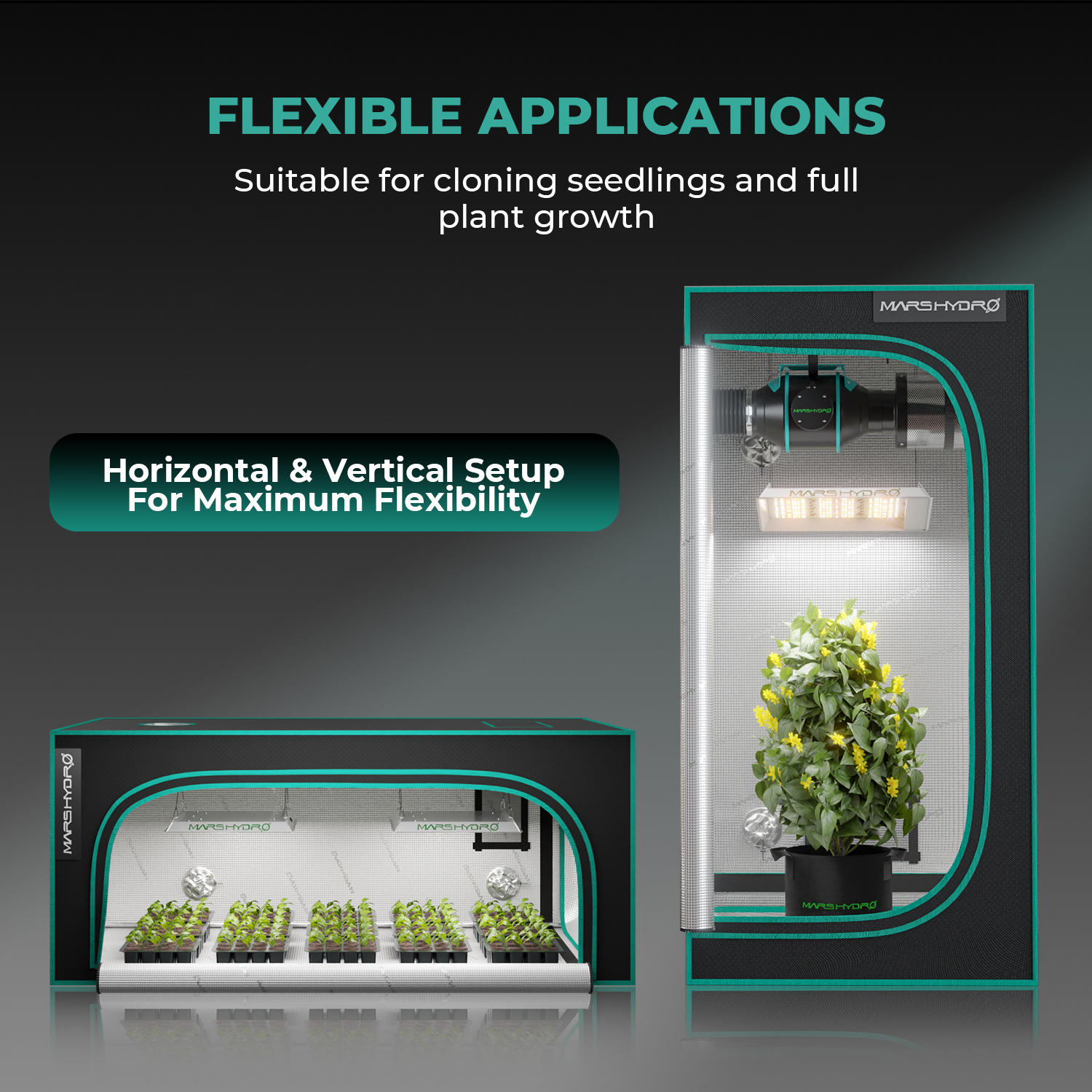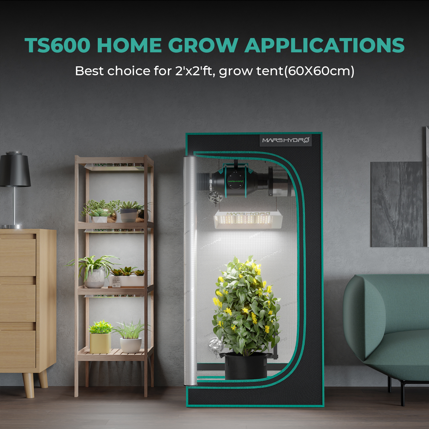 Mars Hydro TS600 on algajatele mõeldud 100W täisspektriga LED kasvulamp, mis sobib ideaalselt väikesele kasvupinnale. See lamp pakub energiatõhusat valgustust 1–2 taimele ning tagab hea tulemuse siseruumides kasvatamisel. Tänu kompaktsele disainile sobib see kasutamiseks kasvutelkides, väikestes tubades, kappides ja taimeriiulitel. TS600 kasutab BridgeLux LED-kiipe ning on vaikne, kuna puudub ventilaator.
