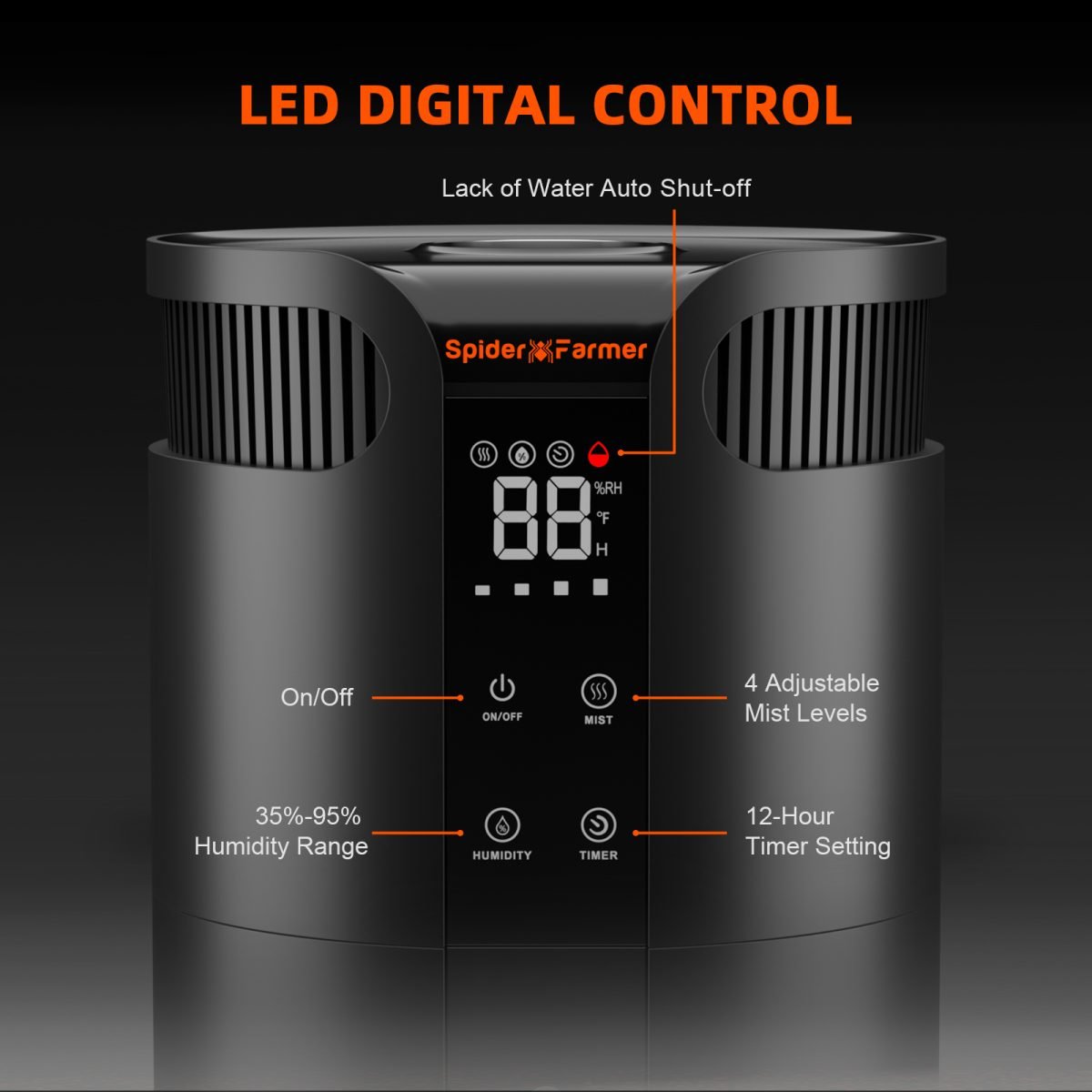 Spider Farmer 16L õhuniisutaja on spetsiaalselt loodud suurte kasvatustelkide ja -ruumide jaoks, tagades taimedele optimaalse niiskustaseme. Suur 16-liitrine veepaak võimaldab pikaajalist tööd ilma sagedase täitmiseta. Seade on varustatud eraldiseisva anduriga, mis tagab täpse niiskuse kontrolli ja ühtlase jaotuse kogu kasvualal.