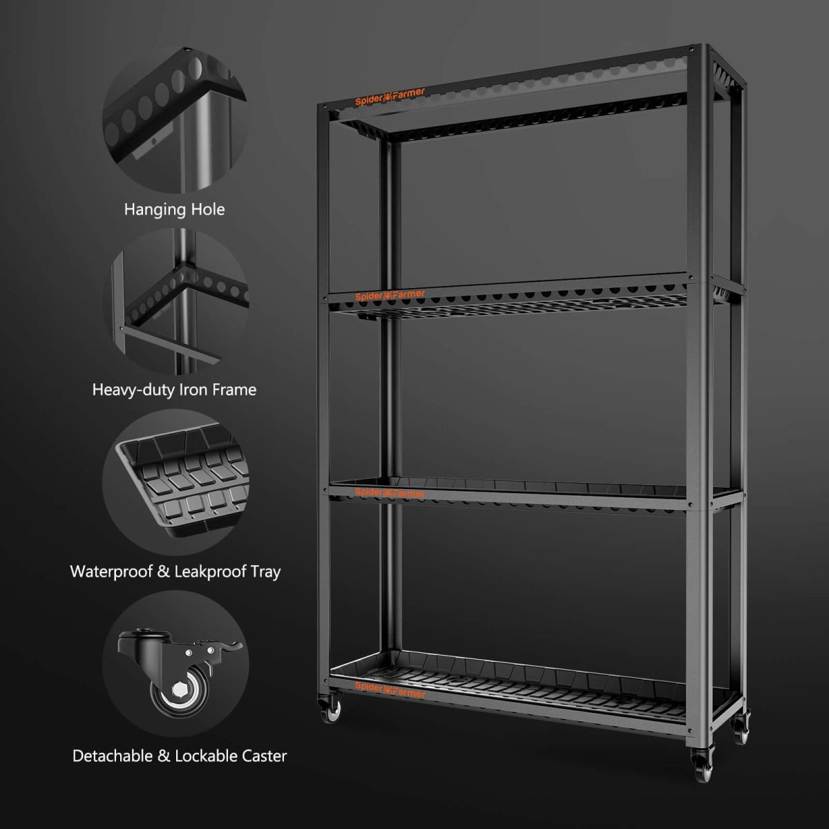 Spider Farmer 3-korruseline taimeriiul on ideaalne valik neile, kes otsivad vastupidavat ja funktsionaalset lahendust taimede paigutamiseks. Selle lihtne paigaldus ja liikuvus teevad sellest suurepärase valiku igasse ruumi, pakkudes samal ajal piisavalt ruumi ja stabiilsust taimedele. See taimeriiul aitab luua organiseeritud kasvukeskkonna, mis toetab taimede tervislikku arengut ja kasvu.