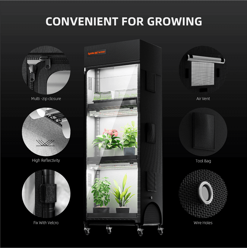 - 1680D Kasvutelk: Valmistatud kõrge tihedusega Oxford kangast, mis hoiab ära valguse lekke ja säilitab soojust ning niiskust, luues ideaalsed kasvutingimused. See tagab, et teie taimed saavad optimaalse keskkonna kiireks ja tervislikuks kasvuks.