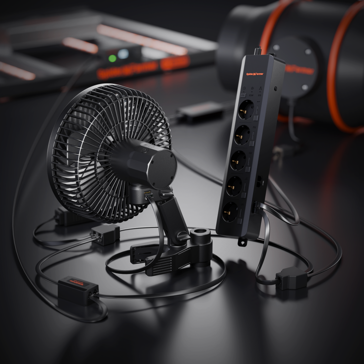 Spider Farmer nutikas kliimakontrolli komplekt pakub tõhusat lahendust siseruumide kasvukeskkonna juhtimiseks. Komplekt sisaldab 6-tollist klambriga ventilaatorit ja GGS AC5 toiteplokki, mis võimaldavad seadmete kaugjuhtimist ning automaatset kliima reguleerimist. Tänu temperatuuri, niiskuse ja valguse anduritele saab süsteem reaalajas jälgida ning kohandada ventilatsiooni vastavalt vajadusele.