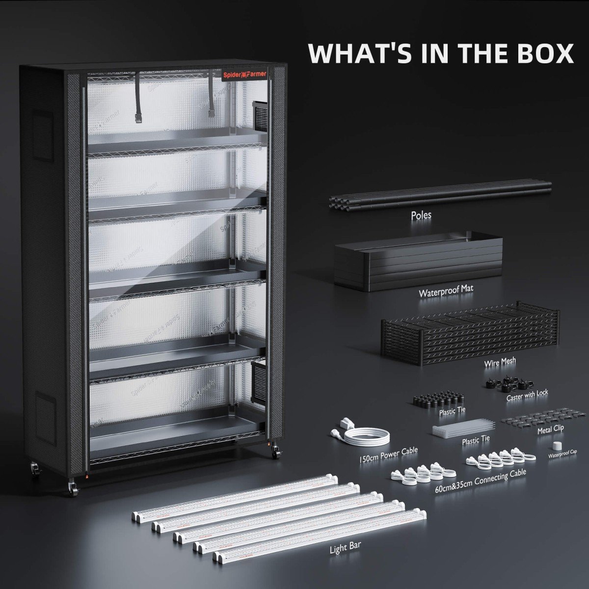 Spider Farmer 6-tasemeline taimeriiul on loodud pakkuma parimat lahendust siseruumides aianduseks. See kompaktne ja tõhus süsteem on varustatud 220W täisspektriga LED valgusribadega, mis soodustavad taimede kasvu igal aastaajal. Kasvatustelk on valmistatud 1680D Oxfordi kangast, mis hoiab valguse lekke minimaalsena ning säilitab soojust ja niiskust.