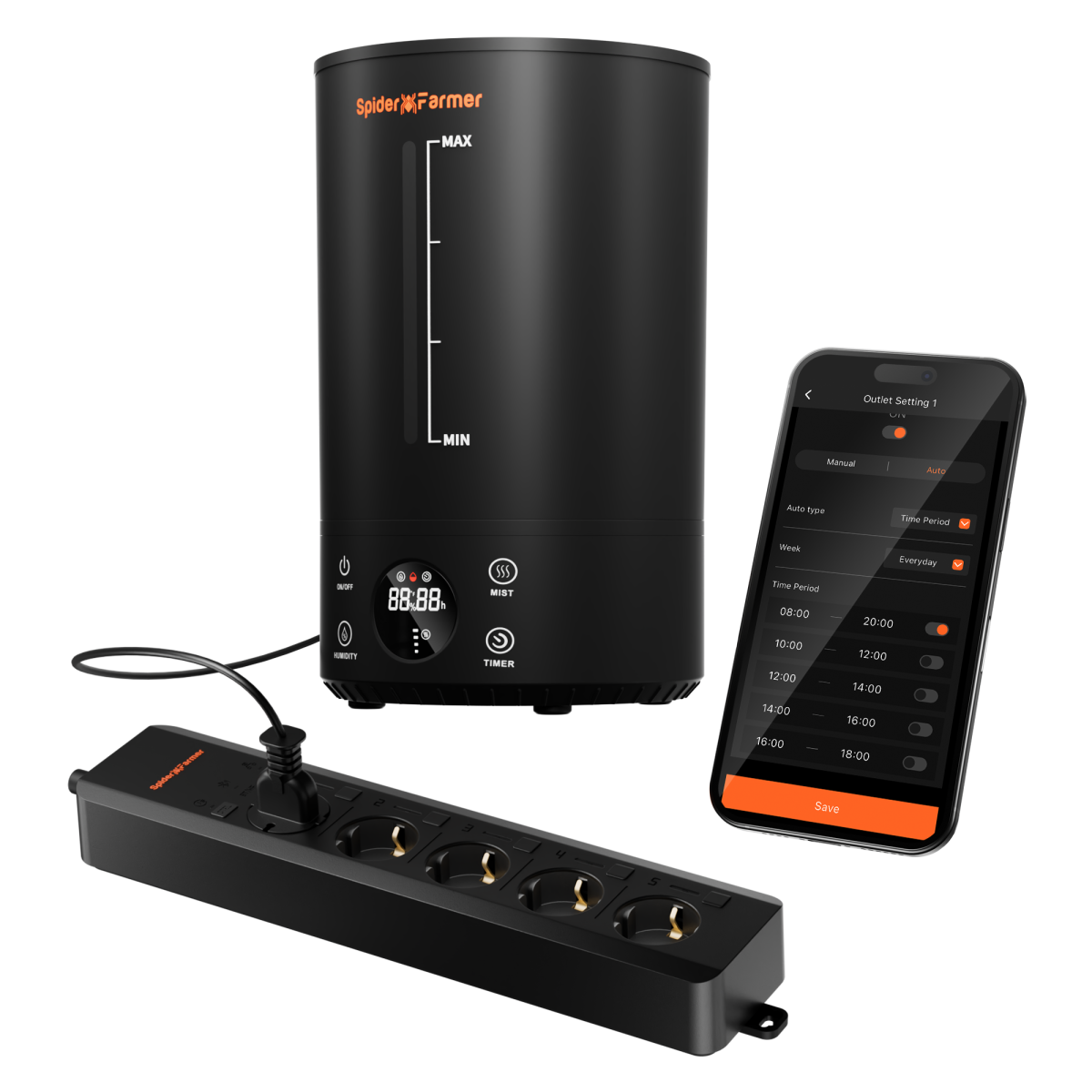 Spider Farmer 6L niisutaja koos GGS AC5 toitekomplektiga on loodud kasvutingimuste täpseks haldamiseks. See komplekt võimaldab automatiseerida ja optimeerida kasvukeskkonda, tagades taimedele stabiilse niiskustaseme ja temperatuuri.