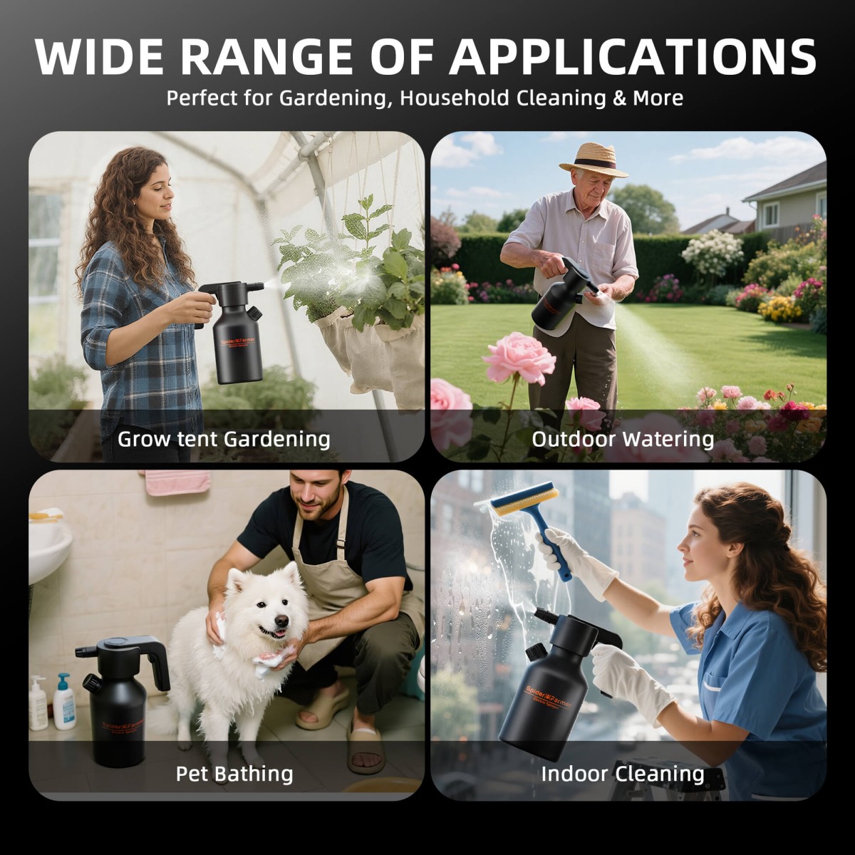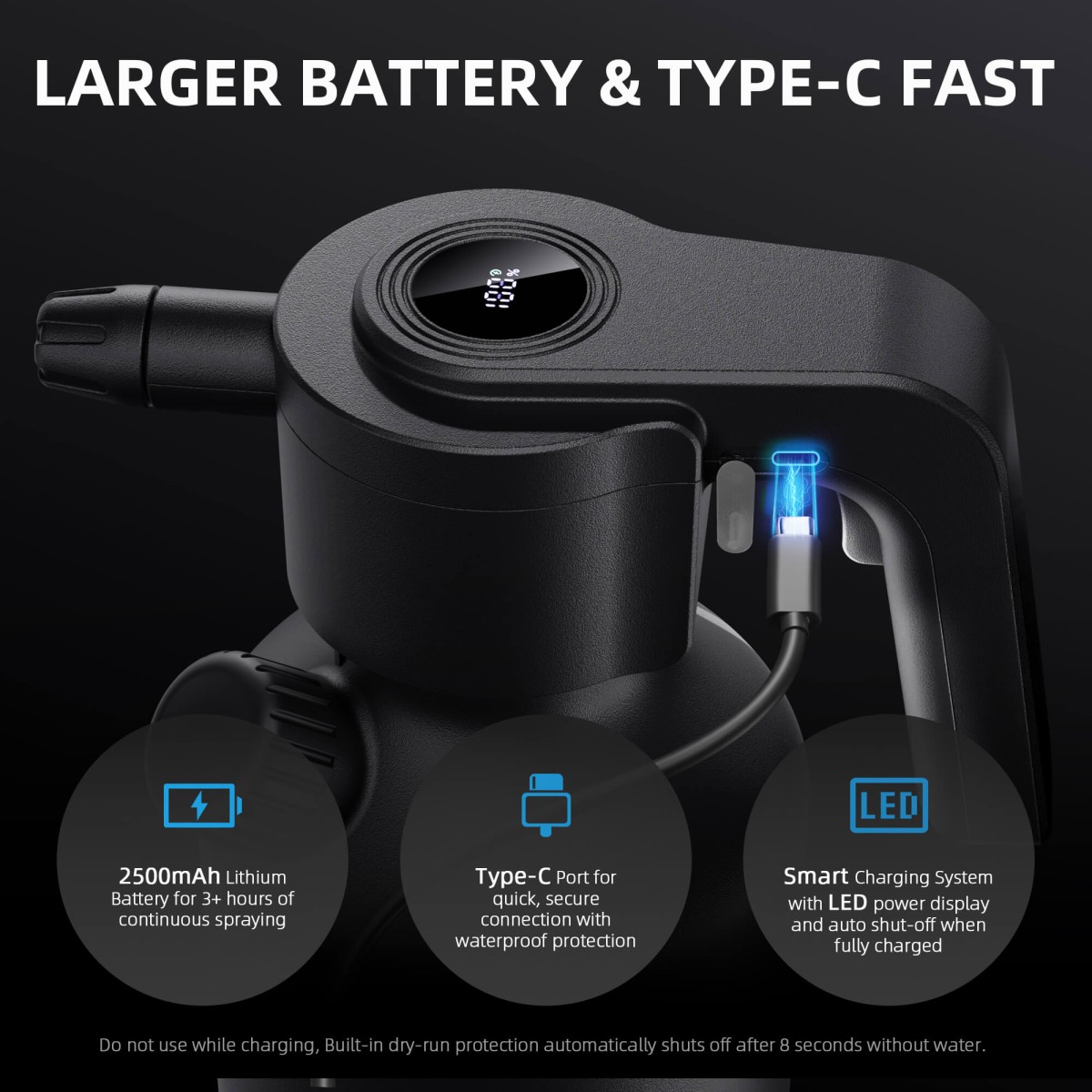 Spider Farmer elektriline taimeprits pakub mugavat ja tõhusat lahendust taimede kastmiseks nii siseruumides kui ka aias. 2-liitrine suur veepaak võimaldab pikemat kastmist ilma sagedaste täitmisteta. Tänu 2500 mAh akule saab pritsi kasutada kuni 3 tundi järjest ning laadimine toimub kiirelt ja turvaliselt Type-C kaabli abil. Nutikas ühe nupuvajutusega lüliti muudab kasutamise lihtsaks ja intuitiivseks, sobides nii algajatele kui ka kogenud aednikele.