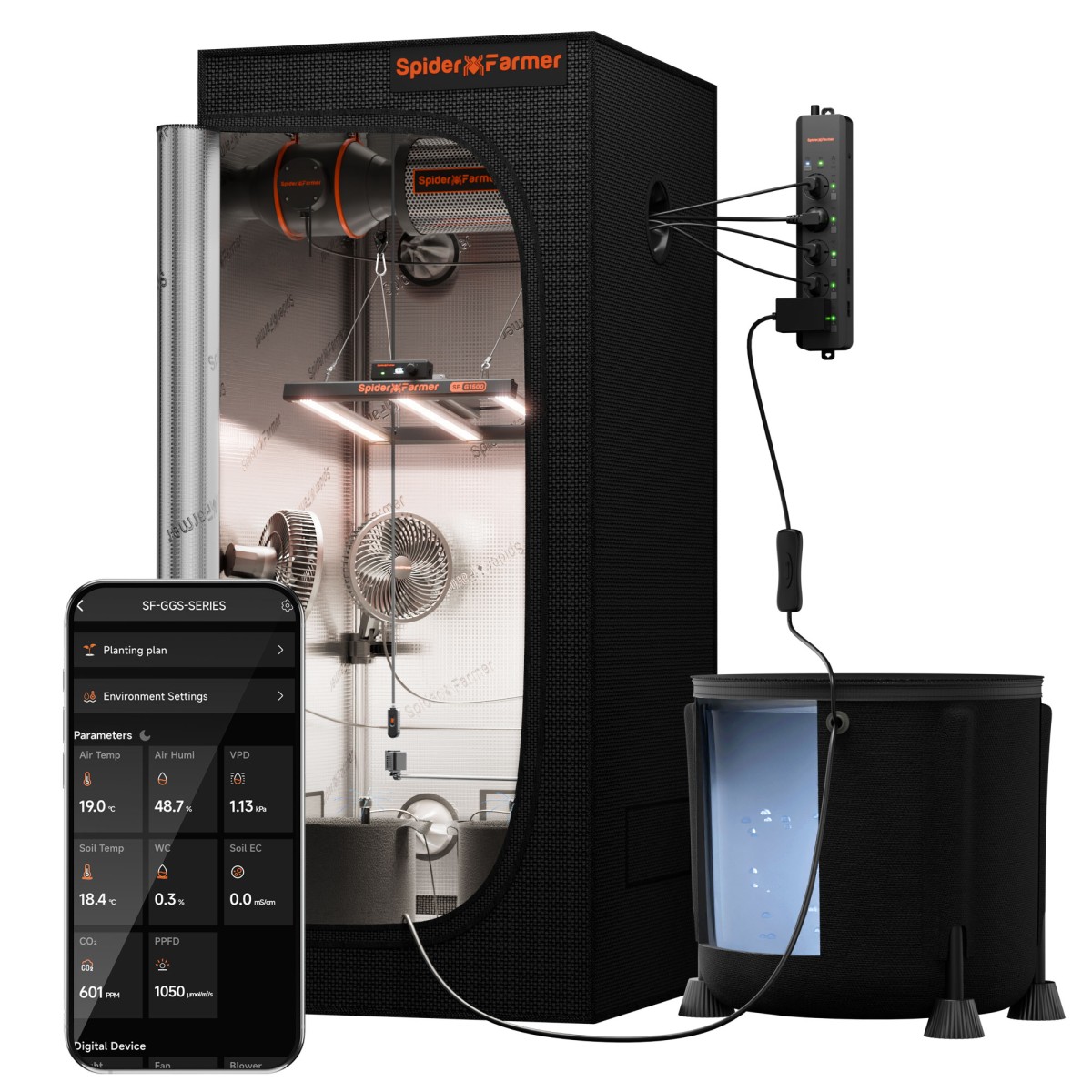 Spider Farmer G1500 on loodud selleks, et muuta taimede kasvatamine siseruumides lihtsaks ja tõhusaks. See komplekt sisaldab kõike vajalikku, et luua ja hoida ideaalset kasvukeskkonda teie taimedele, pakkudes automatiseeritud hooldust ja optimaalseid kasvutingimusi.
