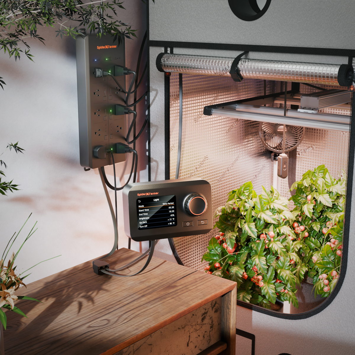 GGS AC10 Nutikas Pistikupesa ja Andurikomplekt on loodud taimede kasvatamise optimeerimiseks siseruumides. See pakub 10 iseseisvalt juhitavat pistikupesa, mis võimaldavad teil ühendada ja hallata kasvulampe, ventilaatorit, küttekehasid ja niisutajaid, et luua ideaalne kasvukeskkond. Tänu individuaalsele juhtimisele saate iga pistikupesa eraldi hallata, mis annab paindlikkuse erinevate seadmete haldamiseks vastavalt teie taimede vajadustele.