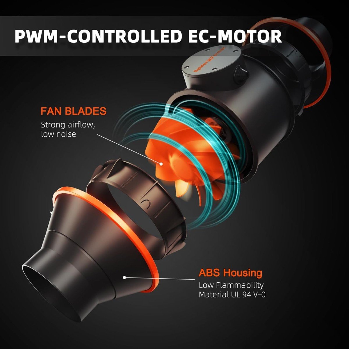 - Tõhus ventilatsioon: Komplektis on 4-tolline toruventilaator koos süsinikfiltriga ja 6-tolline klambriventilaator, mis tagavad stabiilse õhuringluse ja lõhnade eemaldamise.