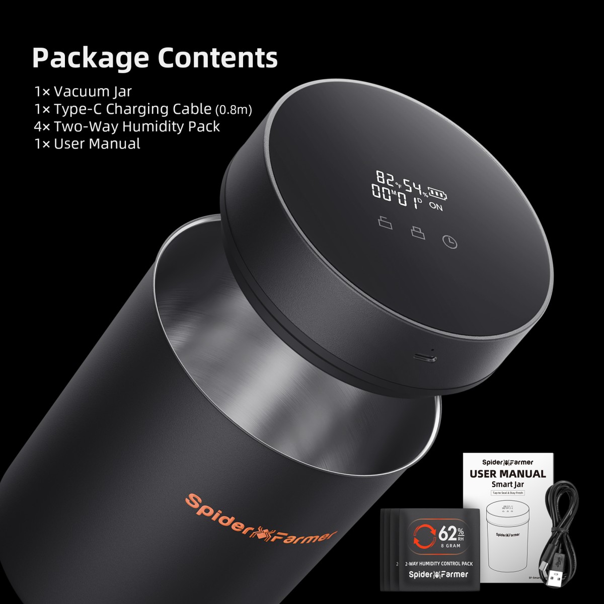 Spider Farmer nutikas 2L Auto-Cure purk koos 5-galloniste korduvkasutatavate kõikvõrkkottidega on ideaalne lahendus taimede, ürtide ja muude koostisosade säilitamiseks ning töötlemiseks. Nutikas purk võimaldab ühe nupuvajutusega automaatset vaakumhermeetikat, mis aitab hoida sisu värskena ja kaitsta riknemise eest. Digitaalne kaas kuvab temperatuuri, niiskust, hoiustamise aega, aku taset ja õhurõhku, pakkudes täielikku ülevaadet hoiustamistingimustest.