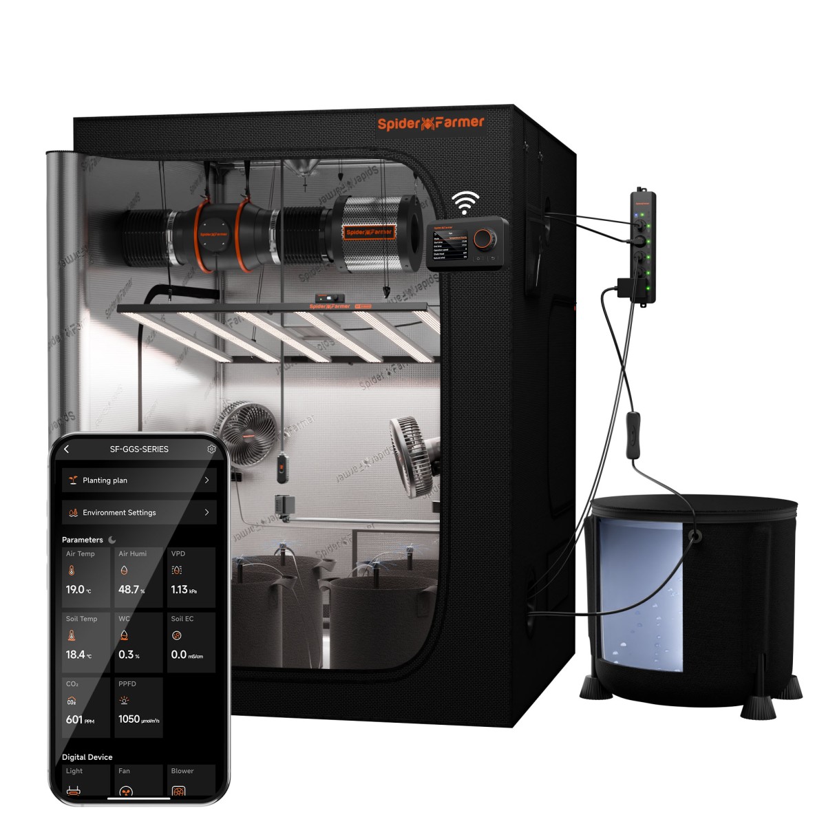Spider Farmer Smartes G8600 kasvatuskomplekt on ideaalne lahendus neile, kes soovivad oma taimede kasvatamist siseruumides automatiseerida. See komplekt sisaldab kõike vajalikku, et tagada teie taimedele parim võimalik kasvukeskkond. Tänu Bluetooth ja WiFi ühenduvusele saate juhtida kõiki seadmeid mugavalt oma nutitelefonist.