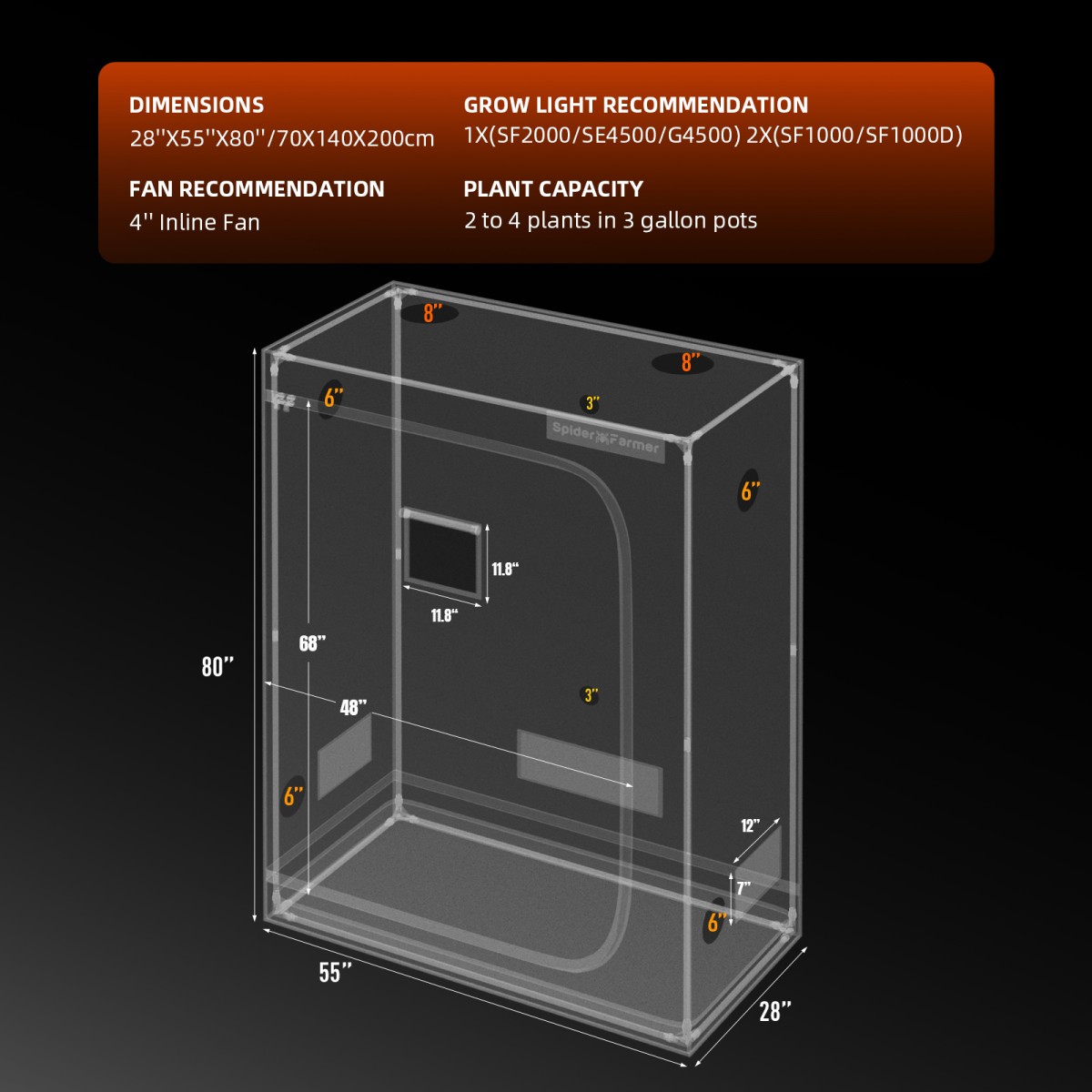 Spider Farmer Smartes LED kasvatuskomplekt on loodud selleks, et pakkuda parimat võimalikku keskkonda taimede kasvatamiseks siseruumides. Komplekt sisaldab kahte G1500 LED taimelampi, mis tagavad ühtlase ja tugeva valgustuse, optimeerides fotosünteesi ja taimede kasvu. Need lambid on energiasäästlikud ja pakuvad täisspektrilist valgust, mis on ideaalne kõikidele kasvufaasidele.