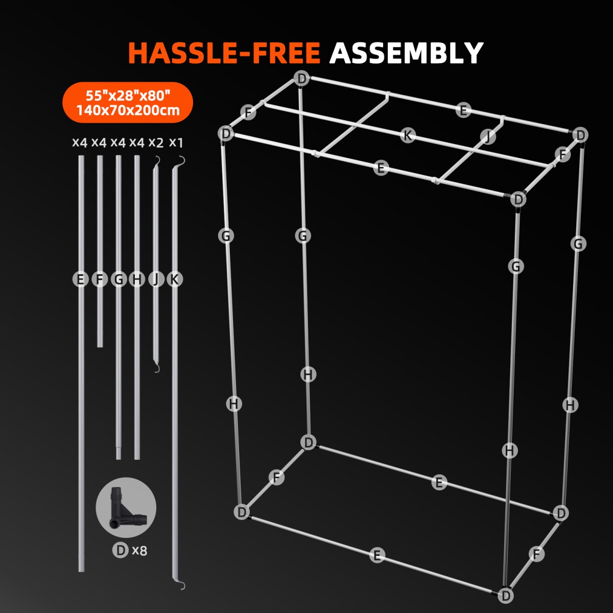 - 140x70x200 cm tugev kasvutelk mustast 1680D Oxford kangast